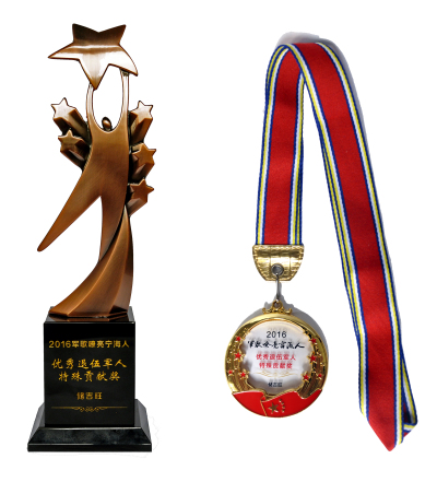 在頒獎典禮現場,儲吉旺現場接受采訪,他說道:“當兵后悔兩年,不當兵則要后悔一輩子。作為一名退伍多年的老兵,軍旅生涯是我生命中無法釋懷的記憶,它教會我遇事堅強及忍耐,于人真誠與友愛。部隊是個大學校,百煉方能成鋼,我們每一個人都要永遠保持在部隊里那一份拼勁和不怕輸的精神。”隨后,林堅為儲吉旺現場頒獎,希望大家能以儲吉旺為退伍軍人的典型模范,永葆革命軍人本色,發揚軍人敢于吃苦、勇于奉獻、接受挑戰、拼搏進取的精神,為社會經濟發展做出力所能及的貢獻。
